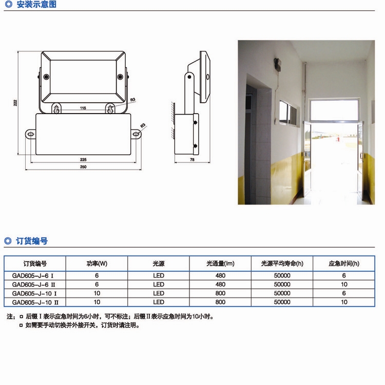 GAD605-J-6Ⅱ LED光源 6W 應(yīng)急時(shí)間:10小時(shí)