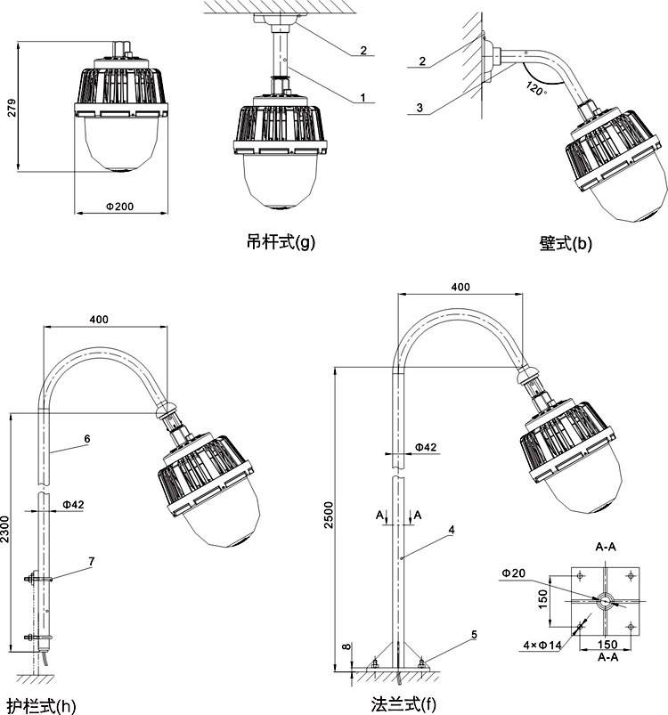 ◆   采用吊頂式、彎桿式、壁掛式、護欄式等多種安裝方式;體積小,重量輕,電纜直接引入方式,安裝接線簡單方便。