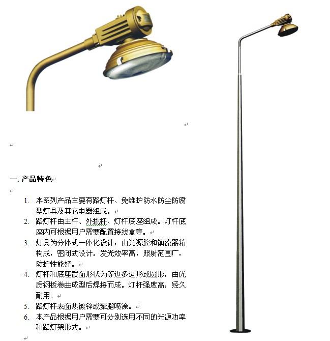 路桿燈型號(hào) 配套燈具型號(hào) 光源功率(W) 建議安裝高度